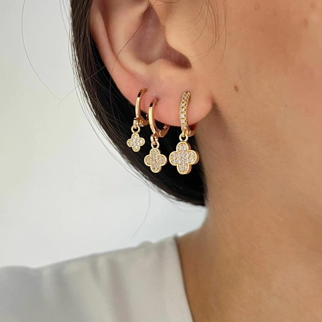 Trio Argolas Trevos Cravejados banhado a ouro